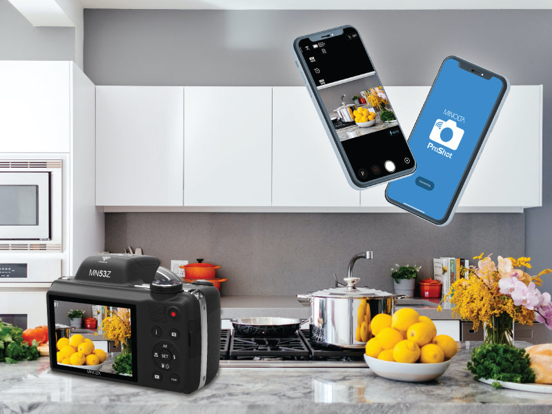 Control your camera and download photos and videos with the built-in WiFi and the Minolta ProShot app integration.
