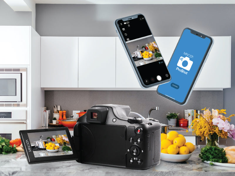 Control your camera and download photos and videos with the built-in WiFi and the Minolta ProShot app integration.