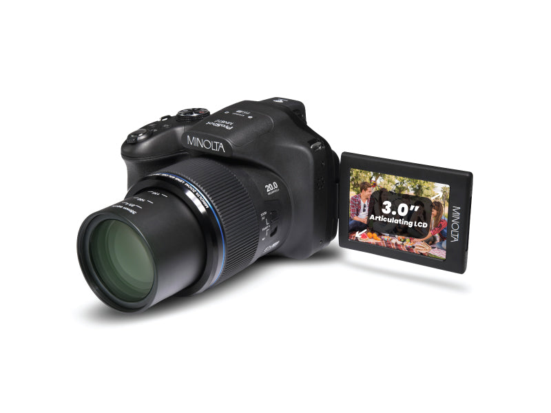 Don't trust your special moments to anything less than this powerful SLR-style camera from Minolta. Capture 20MP stills that you can crop or enlarge without losing image quality. Record Full HD video for rich detail and vibrant color. Easily share your photos with other Wi-Fi-enabled devices. There's even a 67X optical zoom for shooting from afar or capturing an intimate close-up. Best of all, when you look back on your memories, they'll look as good as the day you recorded them.