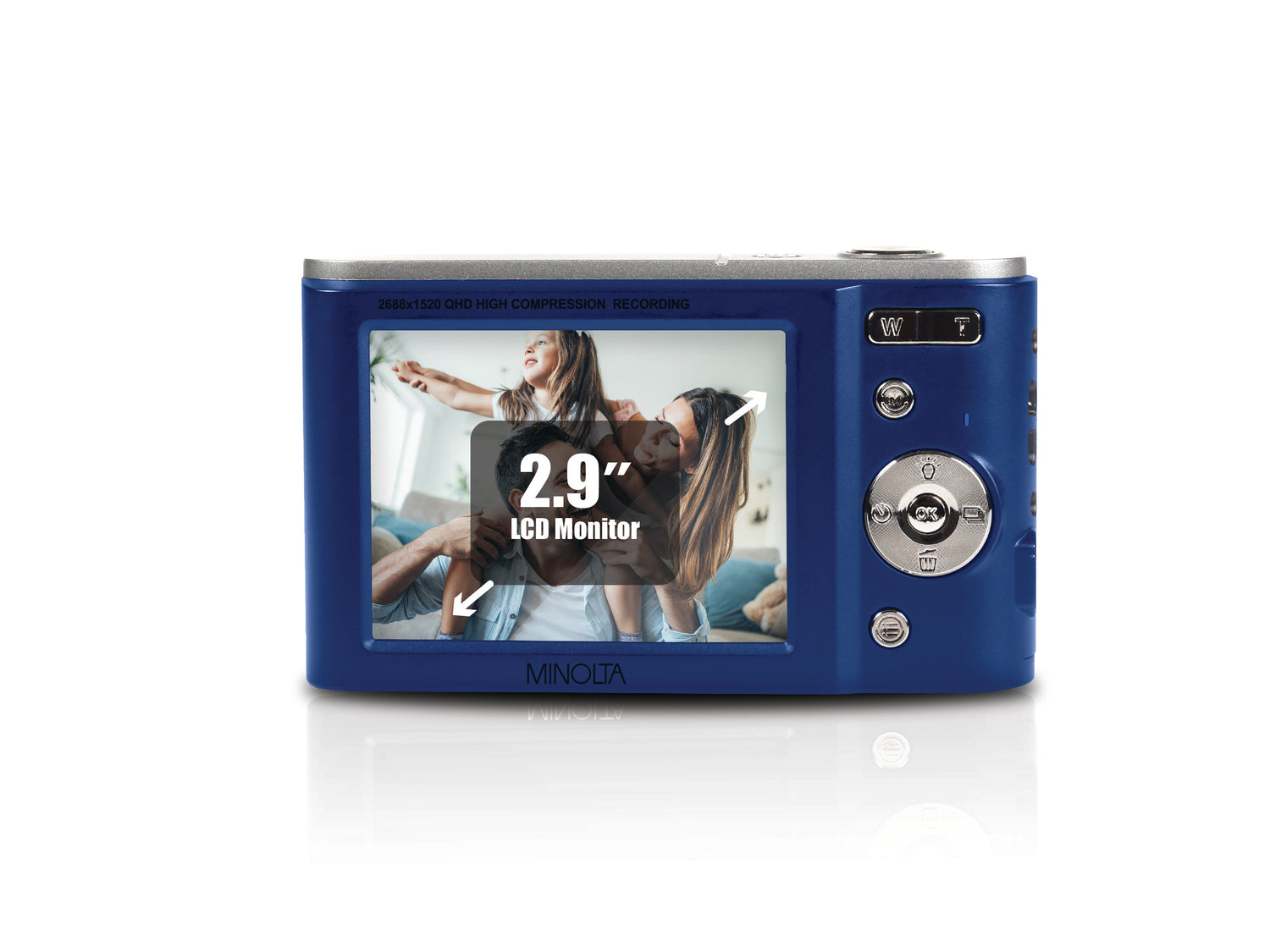 Easily compose shots and review photos and videos with the 2.9" LCD Screen.