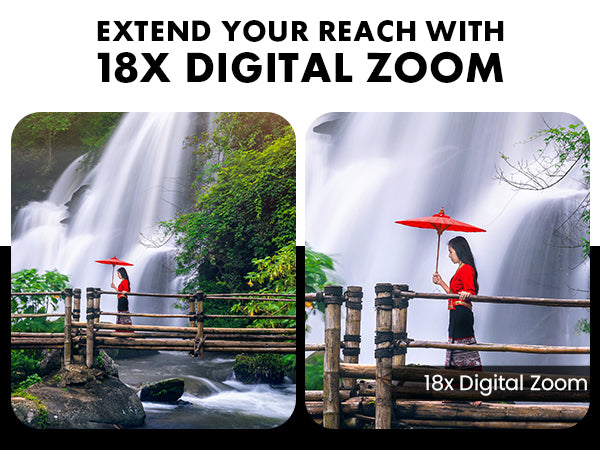 - The 18X digital zoom allows you to shoot long distances and intimate close-ups.
